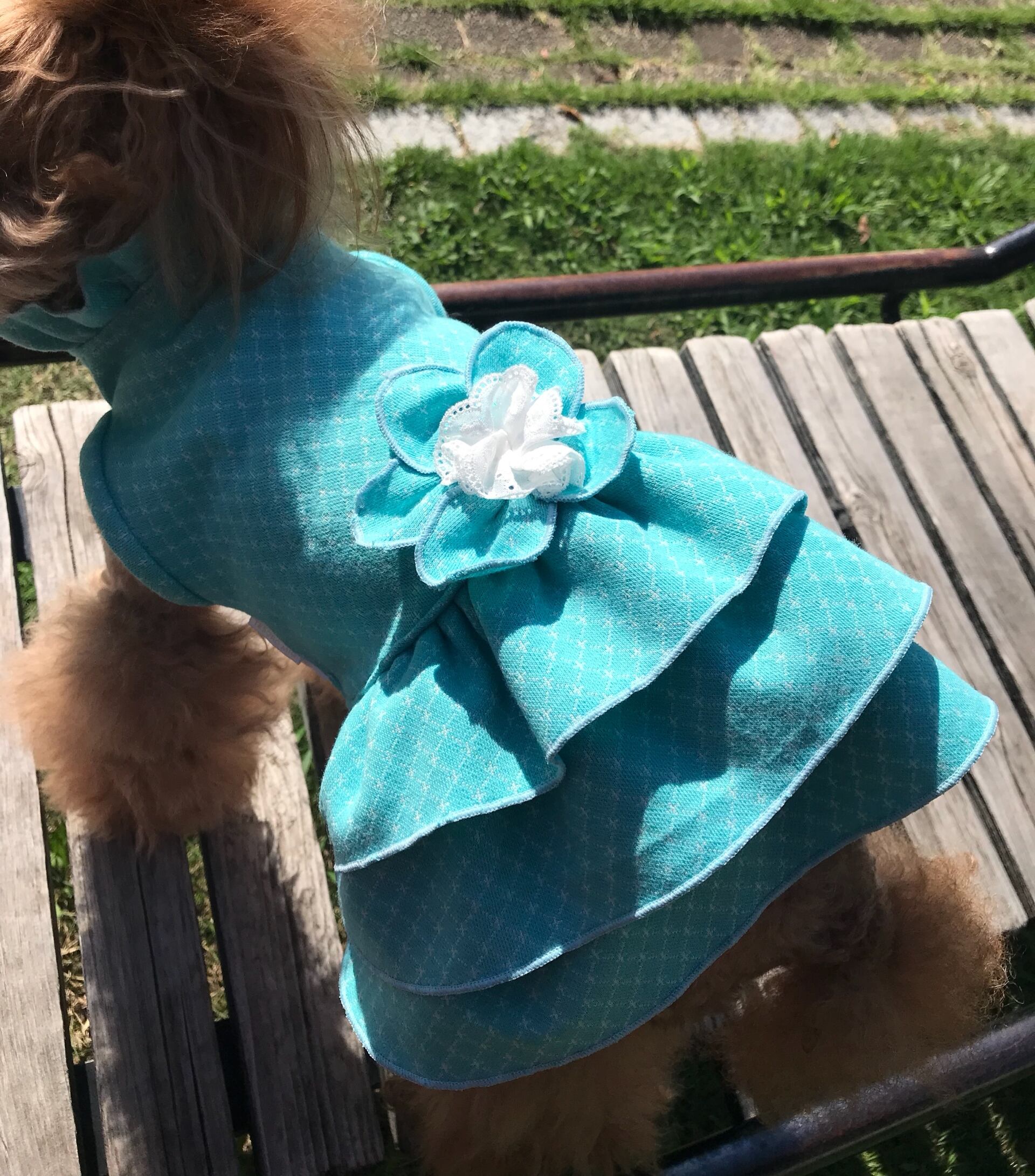 ターコイズカラーが爽やかな、立ち襟の可憐なワンピが登場♡