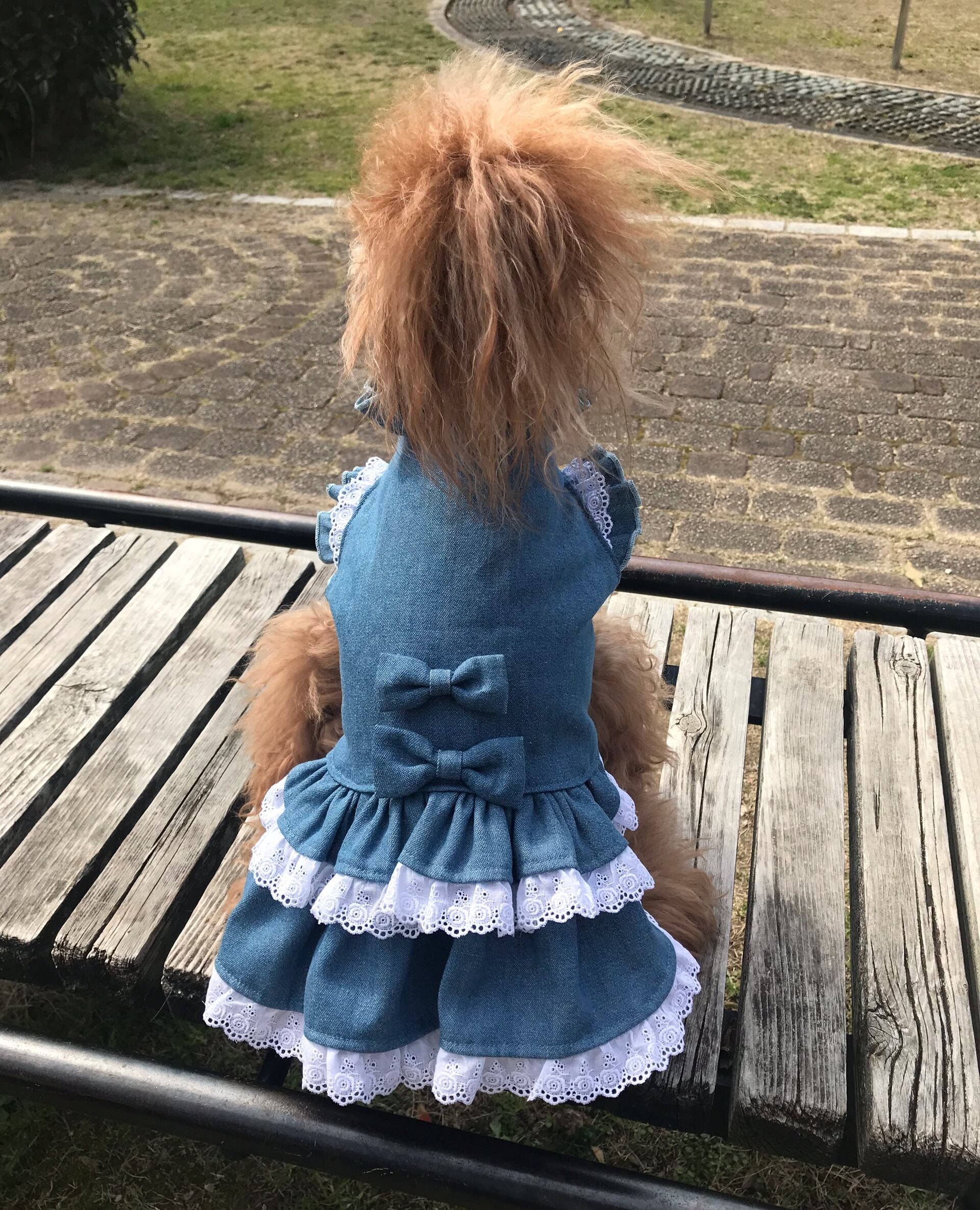 デニムカラーワンピ(レース)【S】