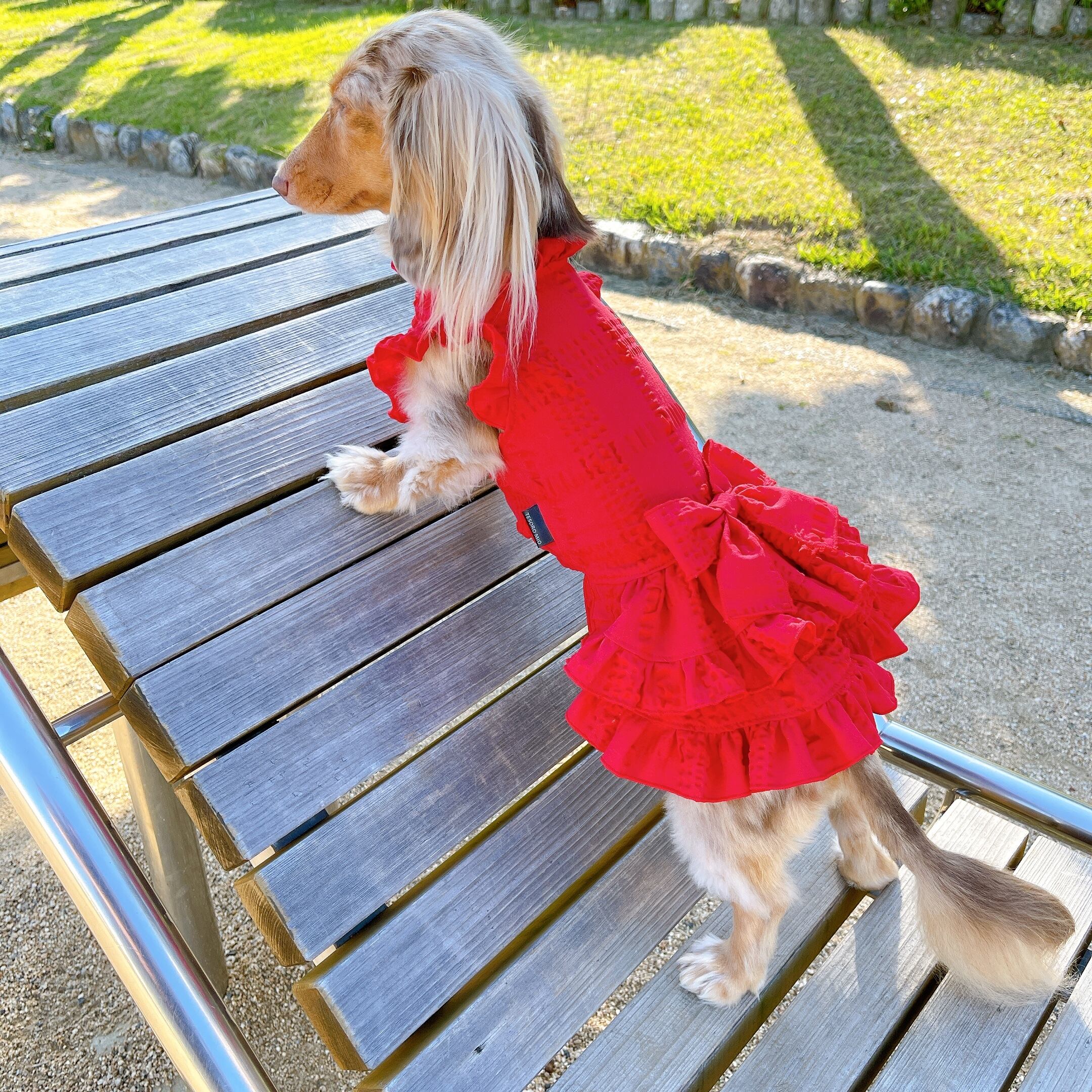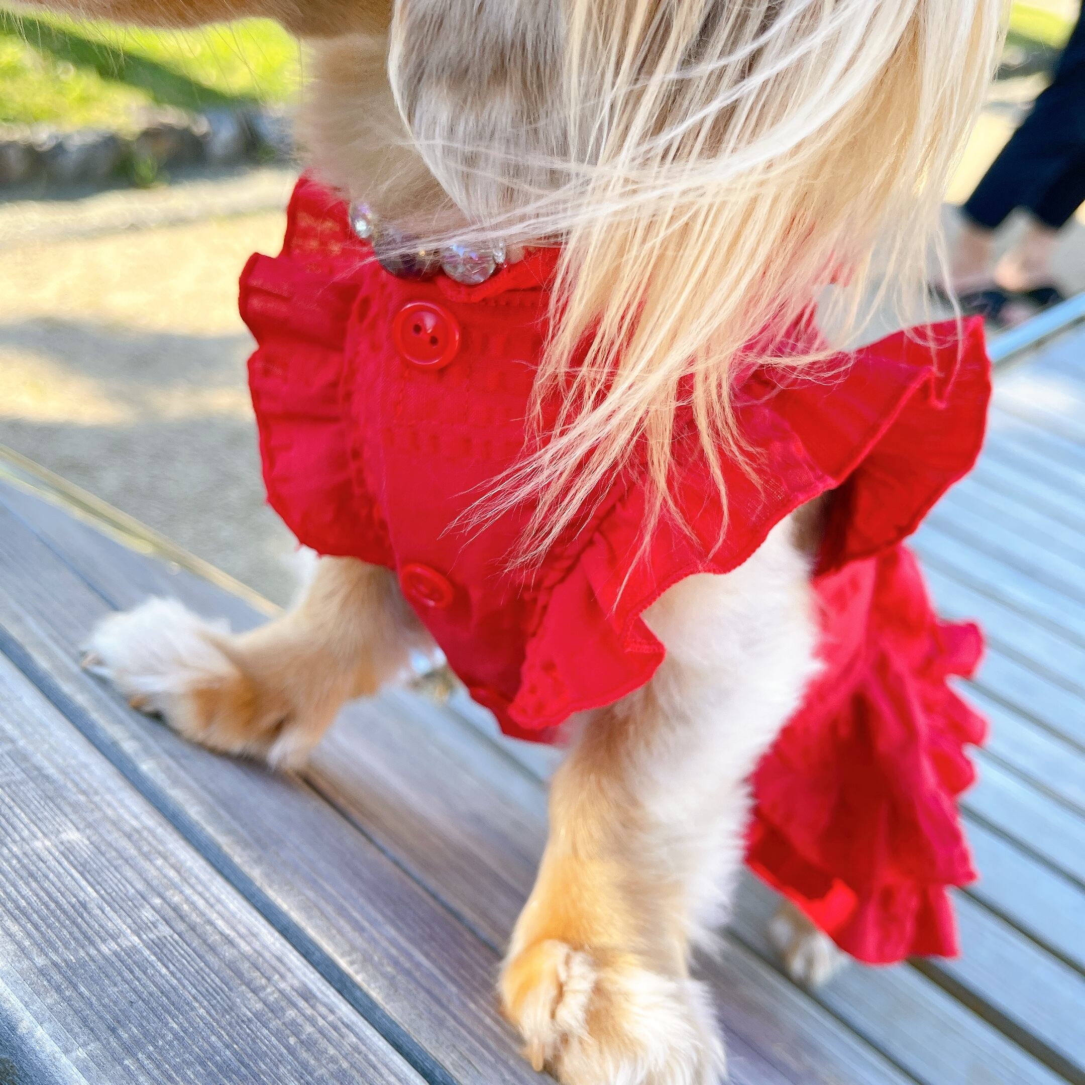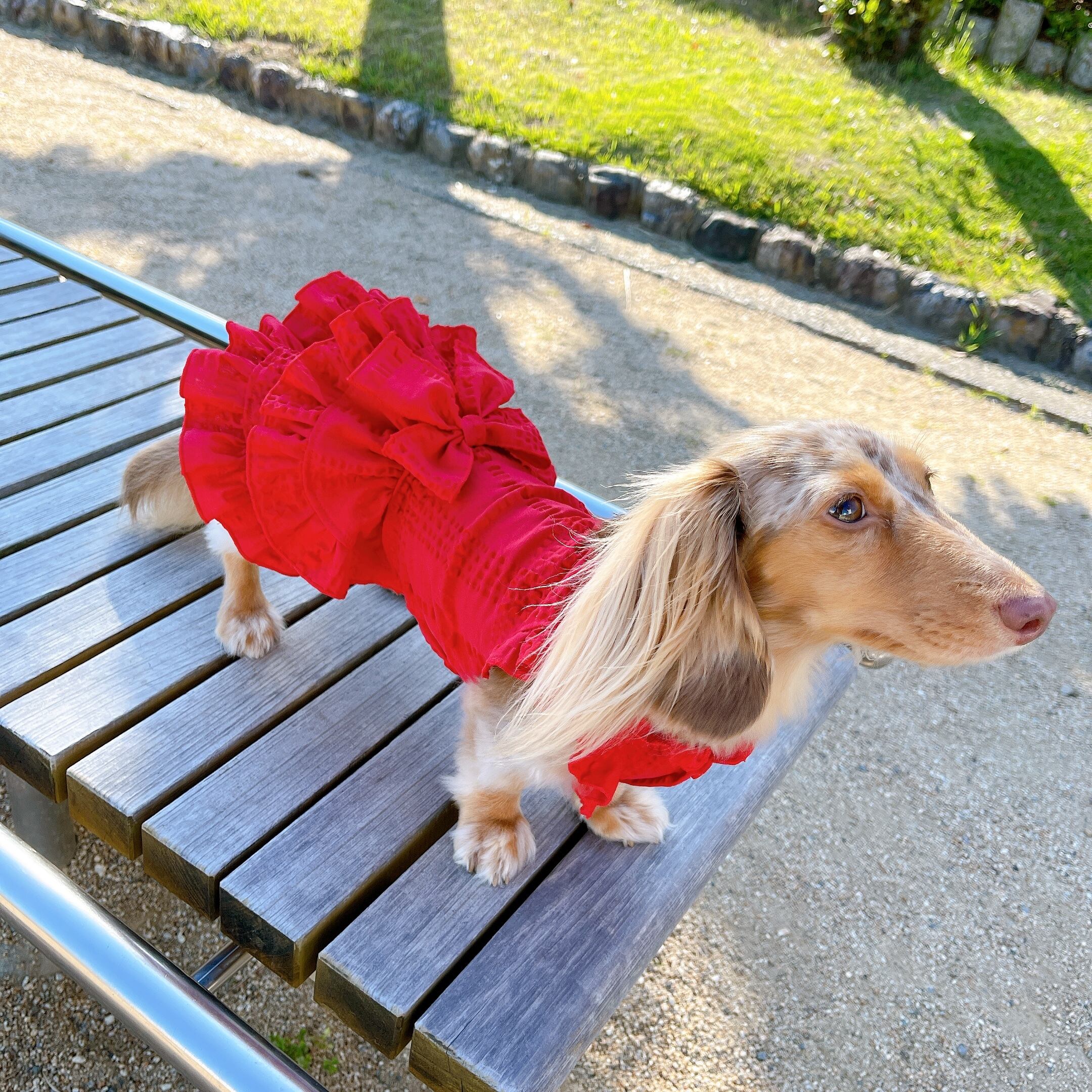 真っ赤がとってもキュート、立ち襟のフリッフリッワンピが登場♡