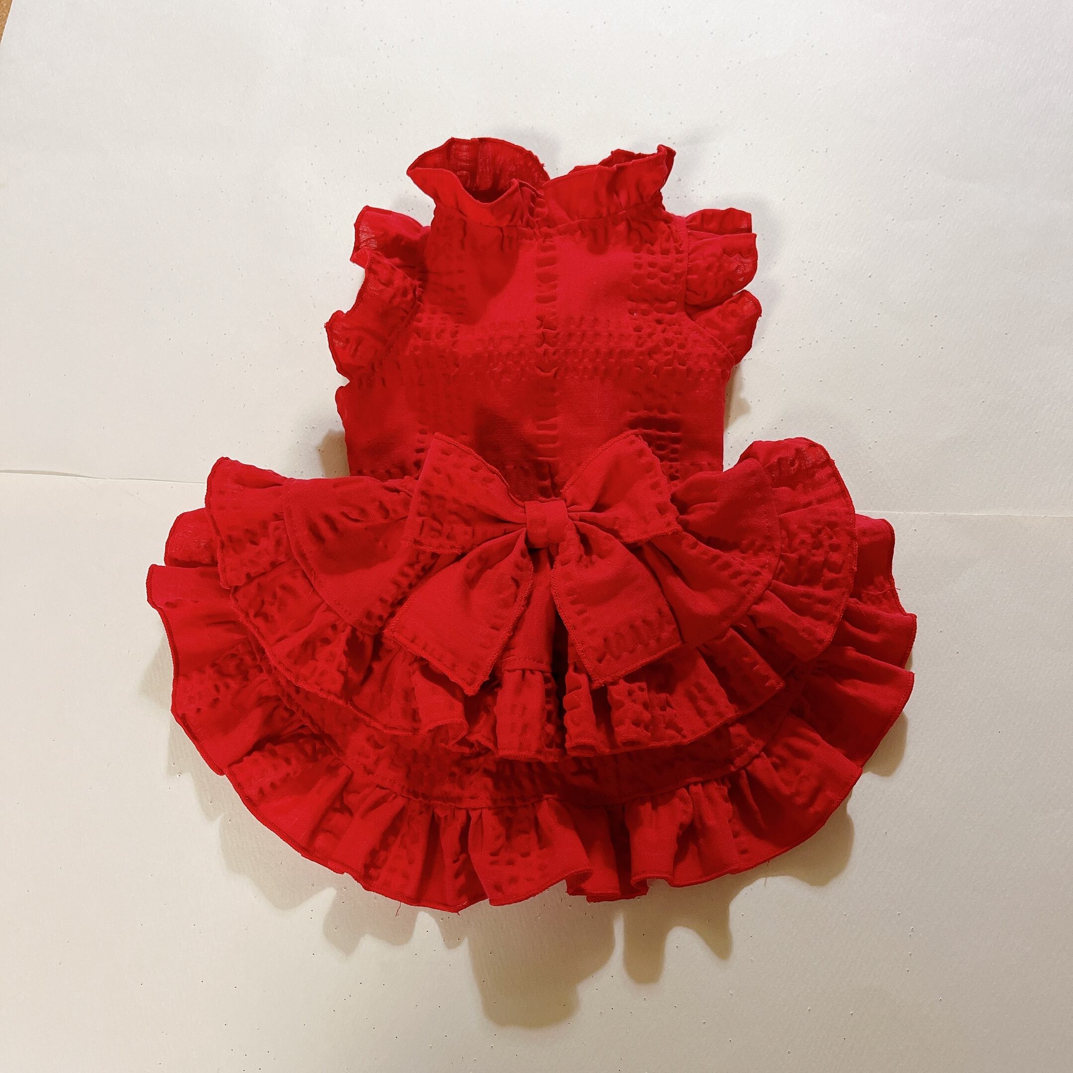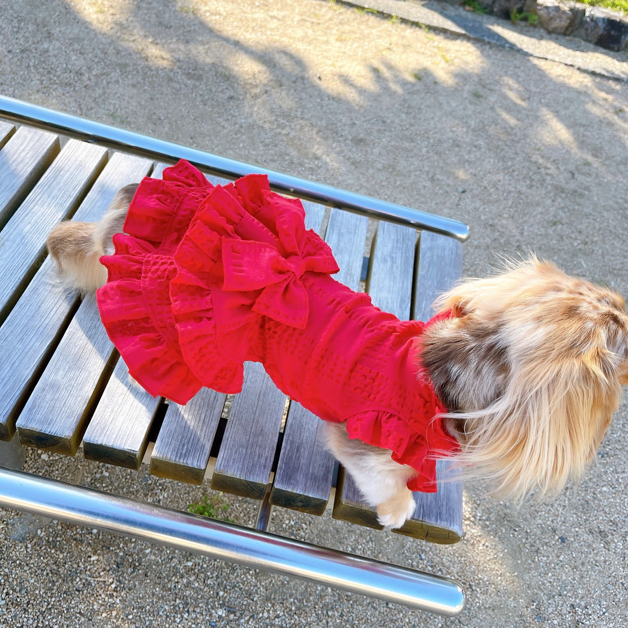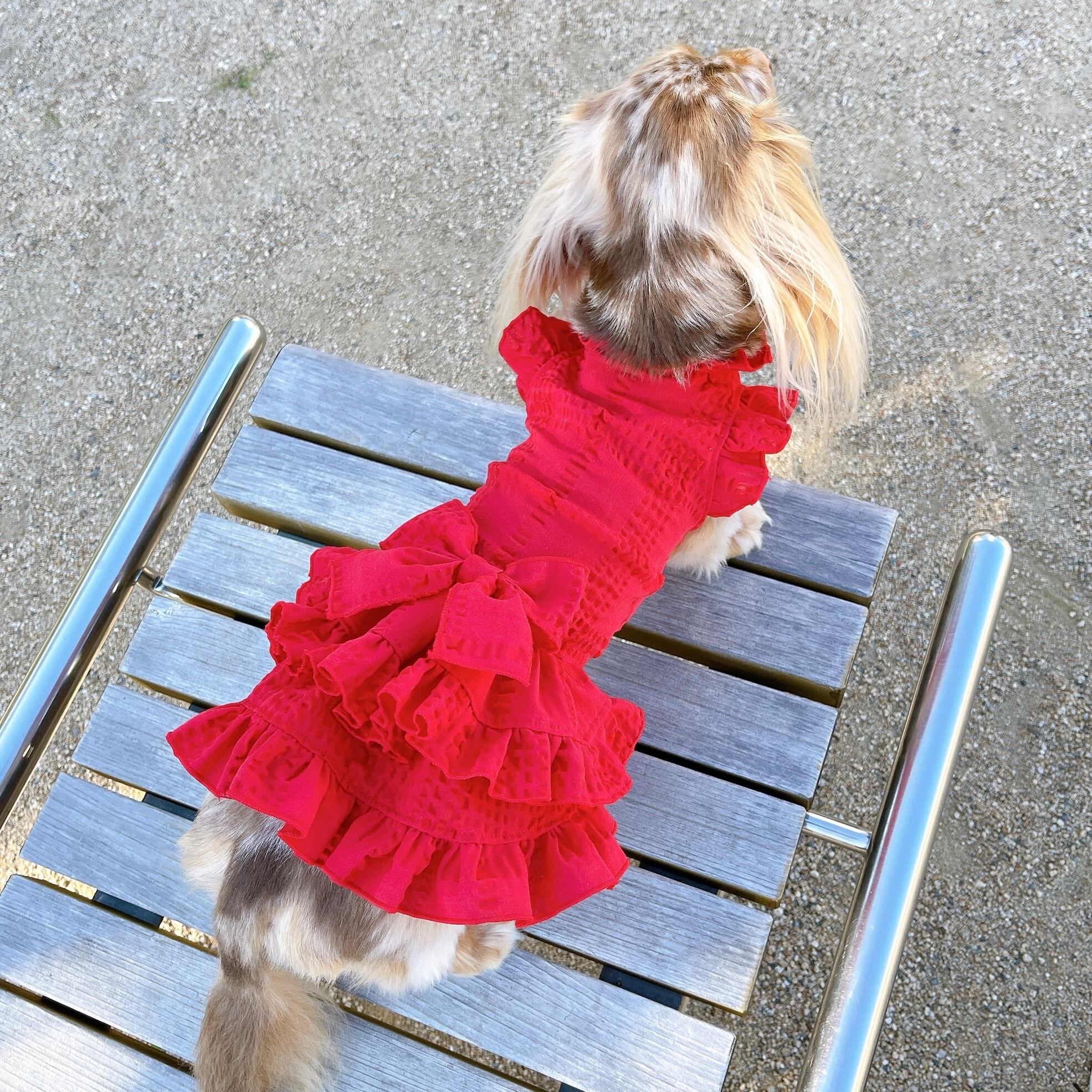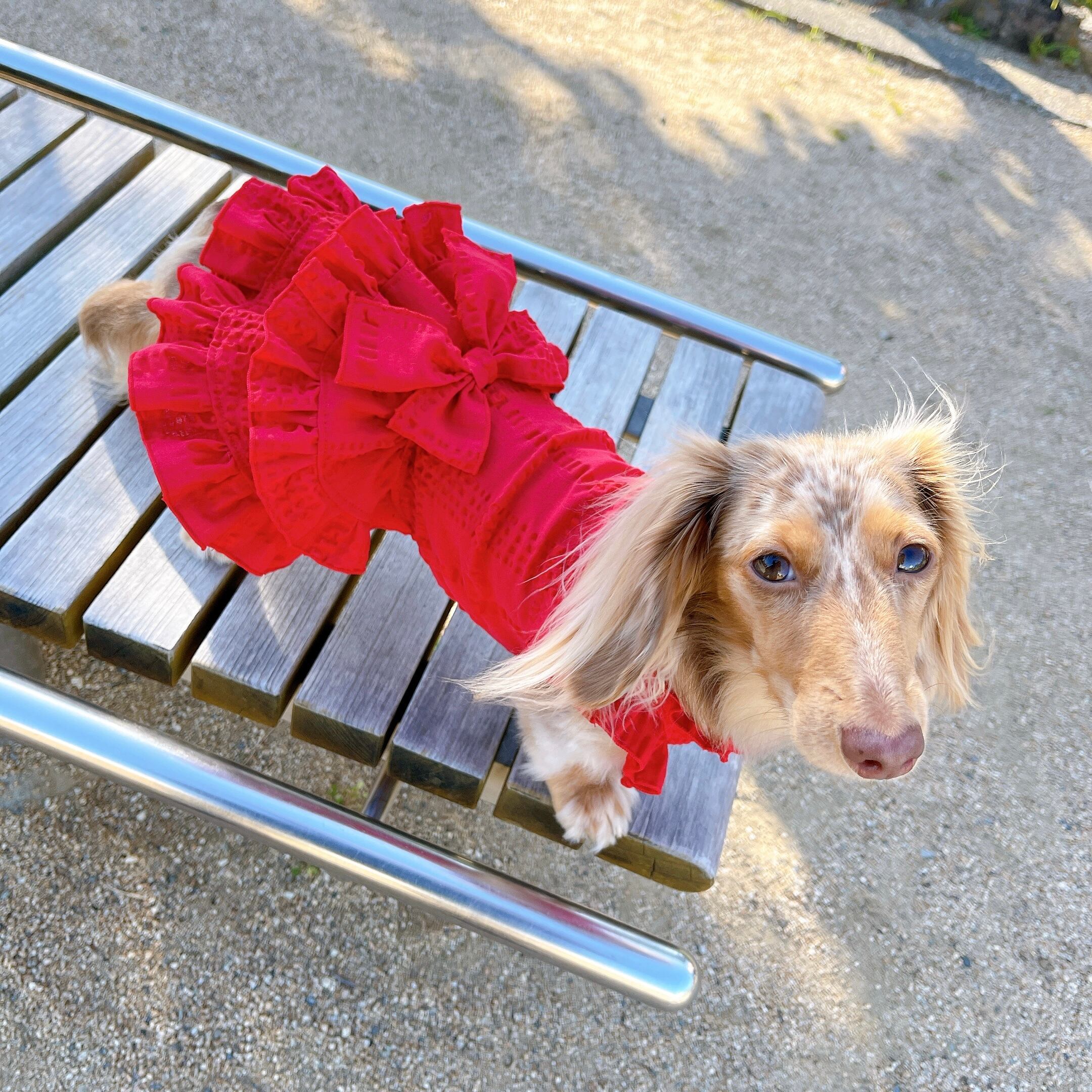 真っ赤がとってもキュート、立ち襟のフリッフリッワンピが登場♡